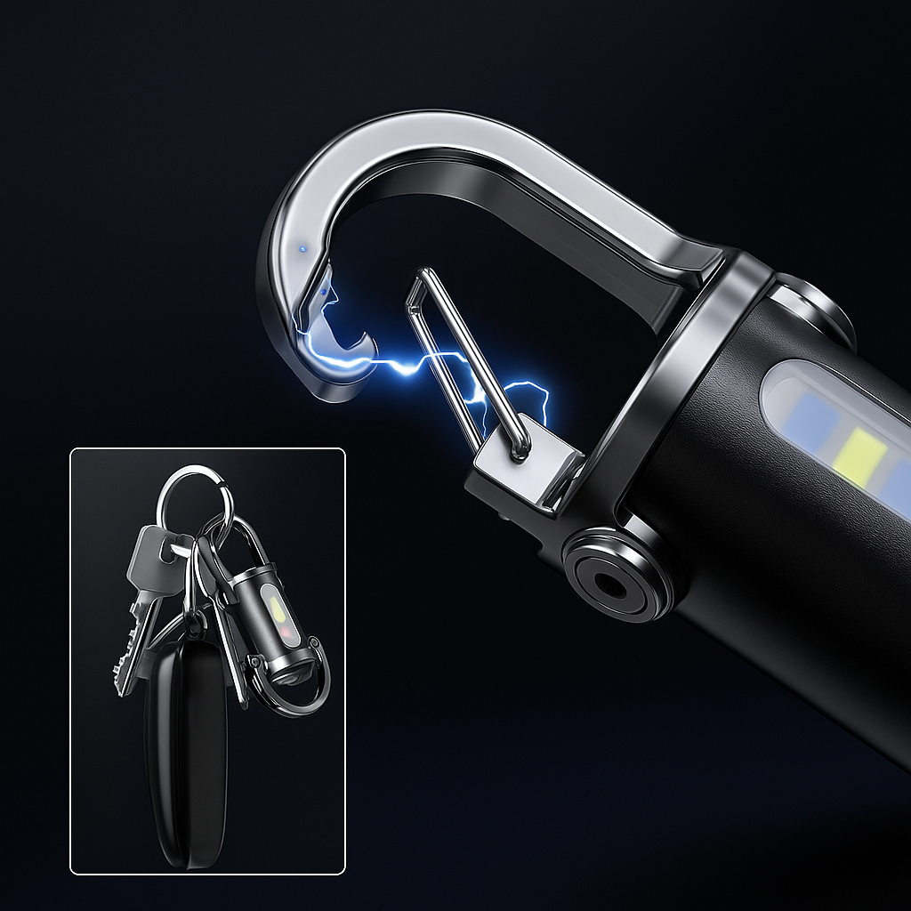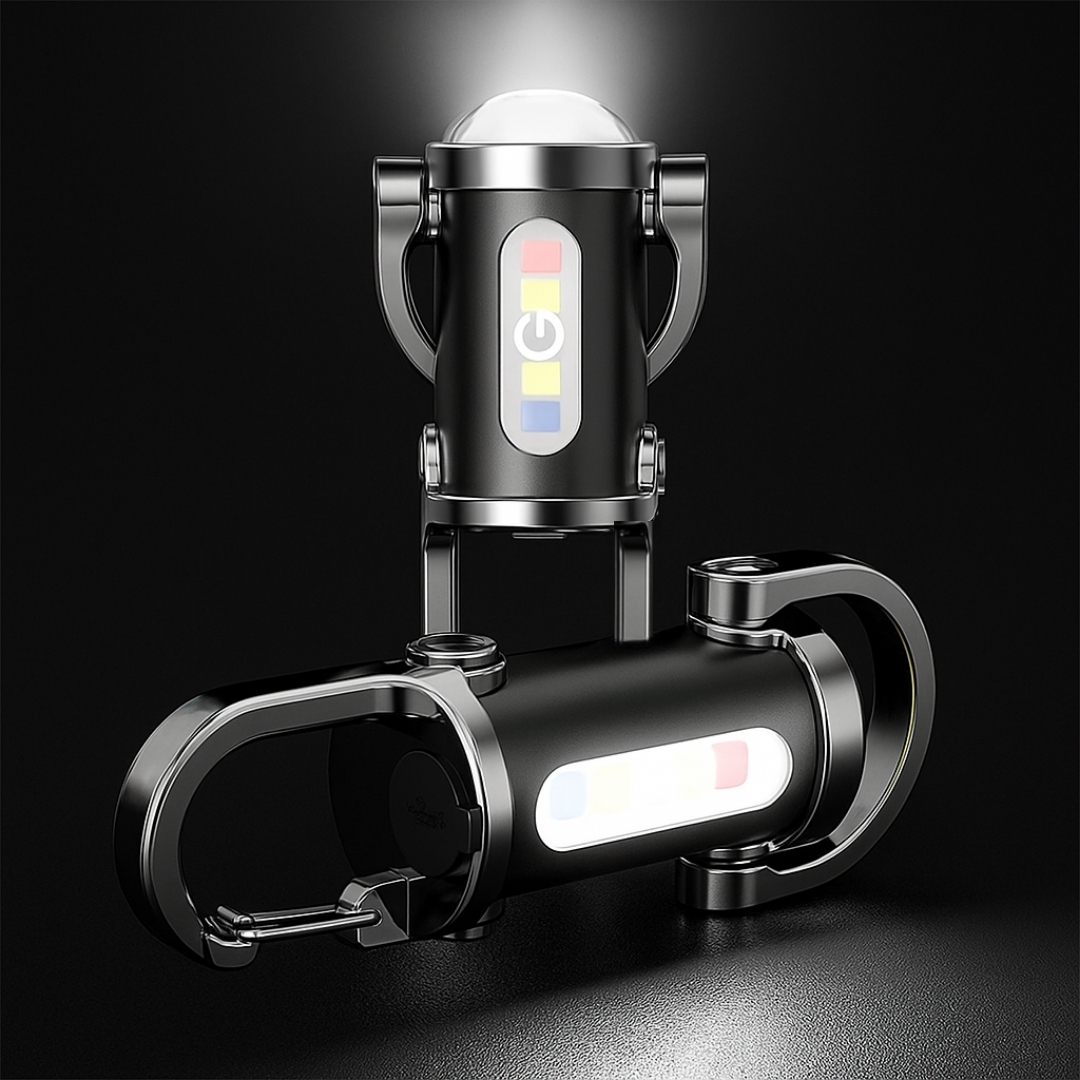 ميدالية وكشاف متعدد الإضاءات 🤩 كل دا في قطعة واحدة بس، بتقدّملك وظيفتين أساسيتين في كل خروجة 😎 كشاف بإضاءات مختلفة ينورلك في أي وقت 🔦 وميدالية تشيل مفاتيحك وتتعّلق في أي مكان تحبه 😉 يعني من الآخر مفتاحك في إيدك ونورك دايمًا معاك 🔑💡