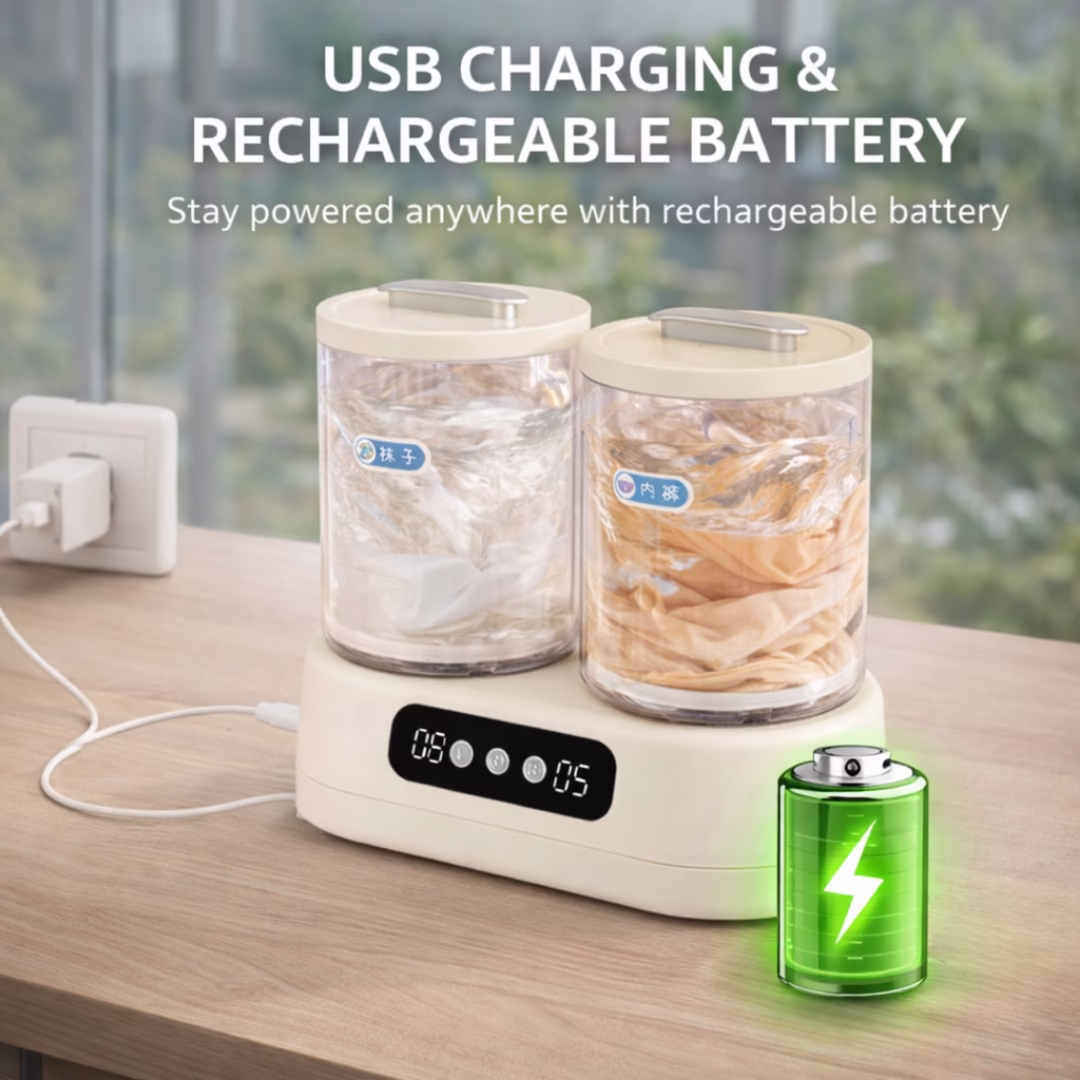 تخيل تغسل هدومك الحساسة والداخلية من غير ما تتوسخ ولا تتقطع وفي ثواني 🤩💦 وهتحافظ علي هدومك الداخلية وملابس الأطفال من التلف 😉 جبنالك غسالة صغيرة مزدوجة الحوض 🧺👕 مصممة مخصوص علشان تغسل الحاجات الحساسة بنظافة حقيقية ومن غير أي مجهود 🧦✨ وكمان تقدر تشحنها وتاخدها معاك أي مكان انت تحبه 😍