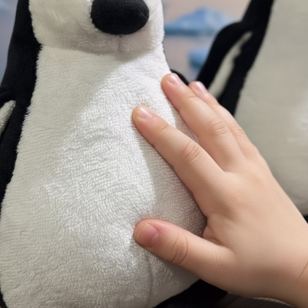 شكل البطريق الكيوت بيشد انتباه الطفل وبيخليه يحس إنها صاحبه مش مجرد لعبة، وبيتحوّل لصاحب قريب من الطفل، يلعب بيه في النهار ويحسسه بالأمان قبل النوم 😴