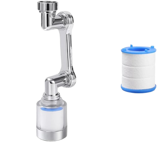 بتركب على 99% من أنواع الحنفيات (المطبخ والحمام)، وبيجي معاها كل الجوانات والأدوات اللي تخليكي تركبيها بنفسك في دقيقة واحدة من غير سباك.