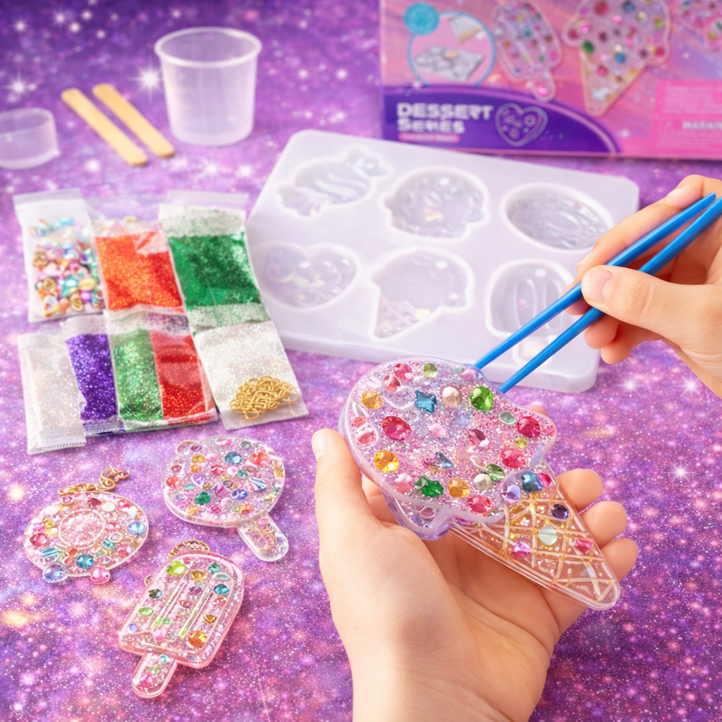 طفلك بيحب يعمل حاجات بإيده ويفضل يجرب ويبتكر؟ 🤔 طب إيه رأيك في لعبة تخليه يصمّم إكسسوارات كريستال شفافة بنفسه وكأنه فنان صغير؟ 👶✨ جبنالك دلوقتي لعبة تصميم إكسسوارات كريستال 💎🎨 لعبة ممتعة وتعليمية في نفس الوقت، بتخلي الطفل يخلط المكونات، يضيف ألوان وجليتر، ويصب في القوالب علشان يطلع بإكسسوارات شفافة ولامعة شكلها يجنّن 💖