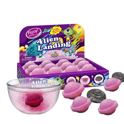 الكرة مش بس بتفور، هي عبارة عن "هبوط اضطراري" (Crash Landing) في حوض الاستحمام. بتعمل فوران قوي وملون، وفي عز الفوران، بتطلع المفاجأة الحقيقية: "المركبة الفضائية المعدنية" اللي كانت مستخبية جوه. دي لحظة الانبهار الحقيقي!